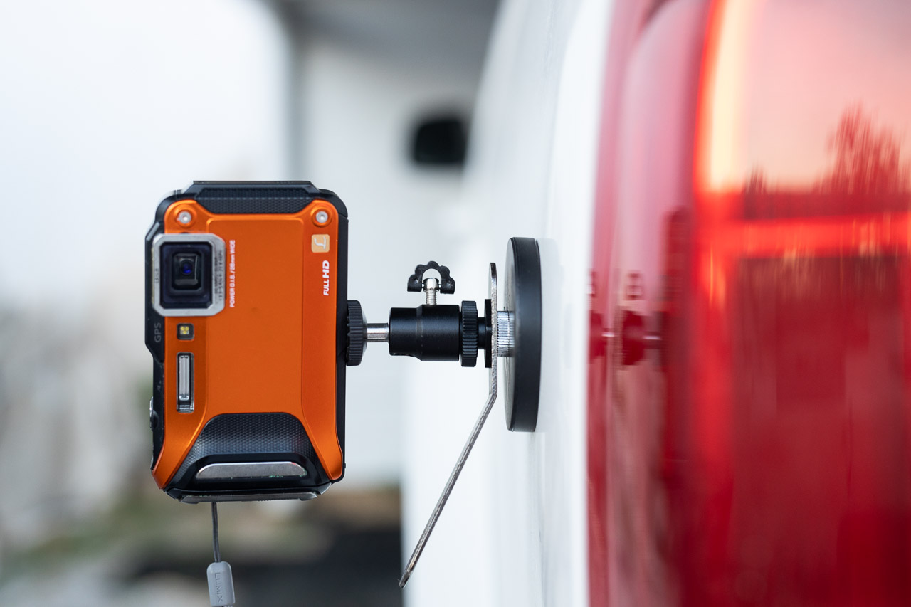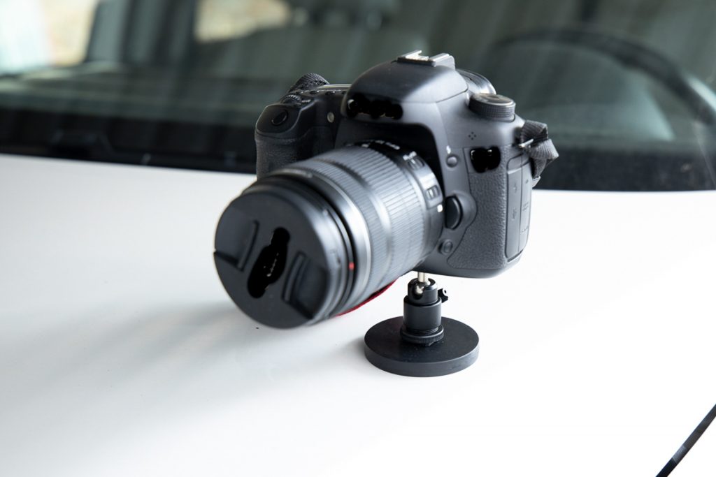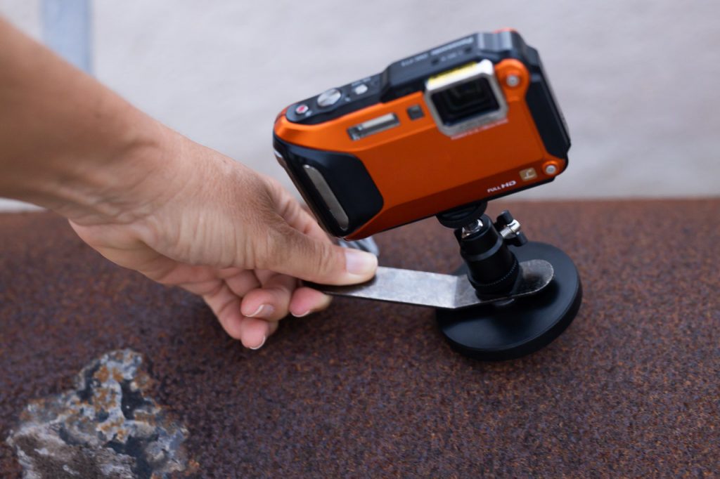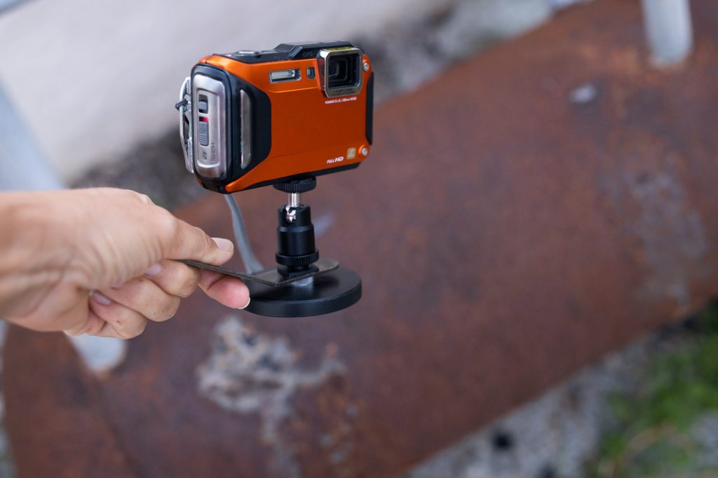 Any magnetic surface becomes a place to attach my camera for selfies and unusual angles. Any part of the car, rusty chains, bolts in telegraph poles, signs, mailboxes, garden sheds, fences – you name it – if it is magnetic, it will hold it. Just screw it into the tripod connector on the bottom of your camera and stick it anywhere you find metal!